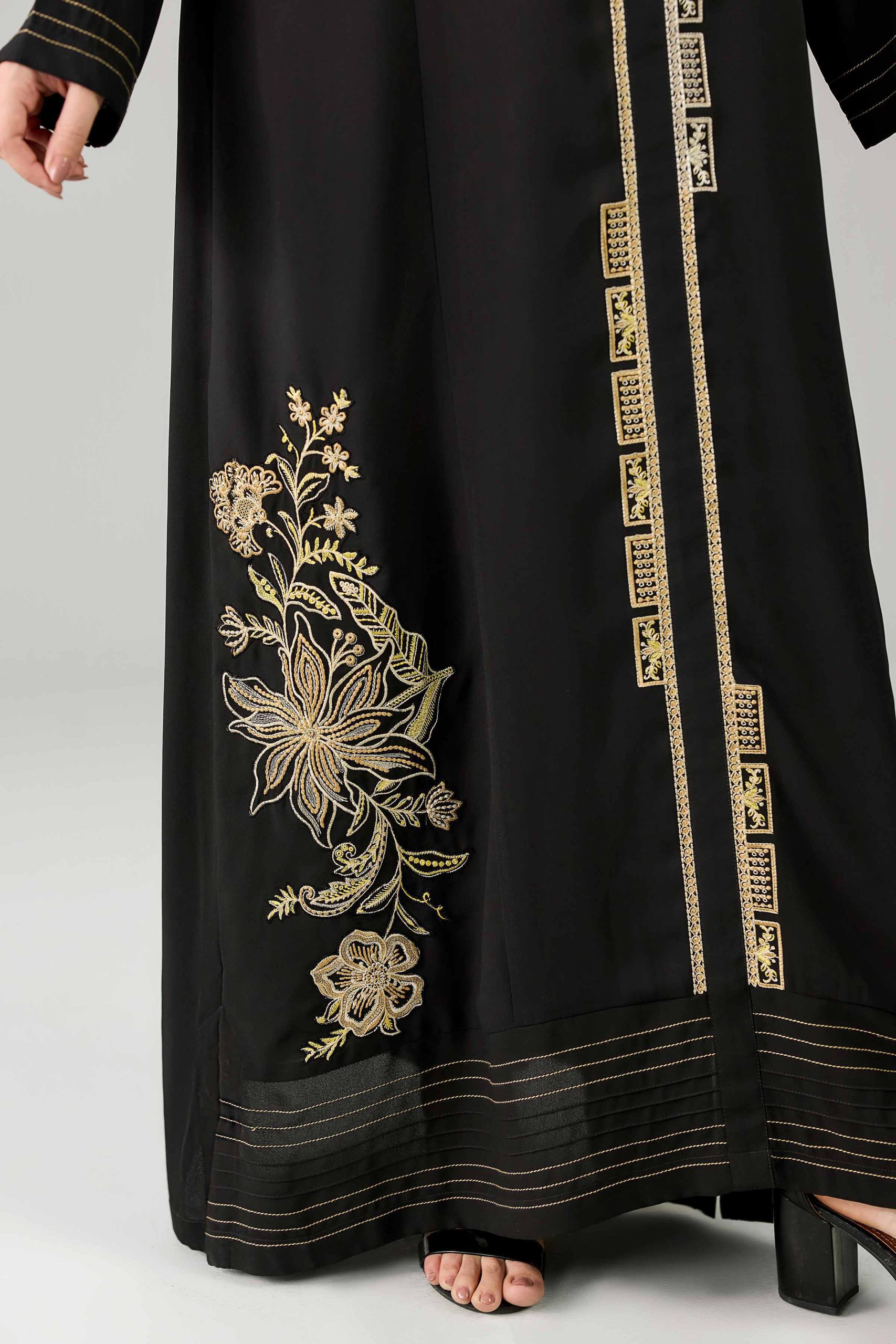 Product Detail Embroidered Dress Dress Long Dress Designed With A Round Neckline And Embroidered Front Panels, Enhanced With Soft Pleats And Refined Topstitch Detailing Along The Front Hem And Sleeves. Fabric: Georgette Color: Black Note: Product color may vary slightly due to photographic lighting sources or monitor settings.